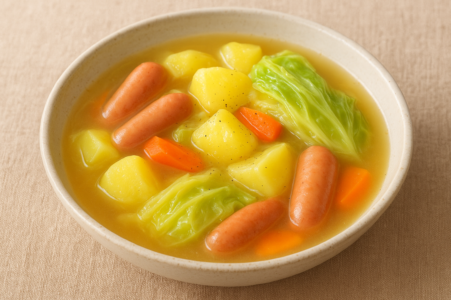 中火で煮込む(約25分)。 - 仕上げに塩・こしょうで味を整える。